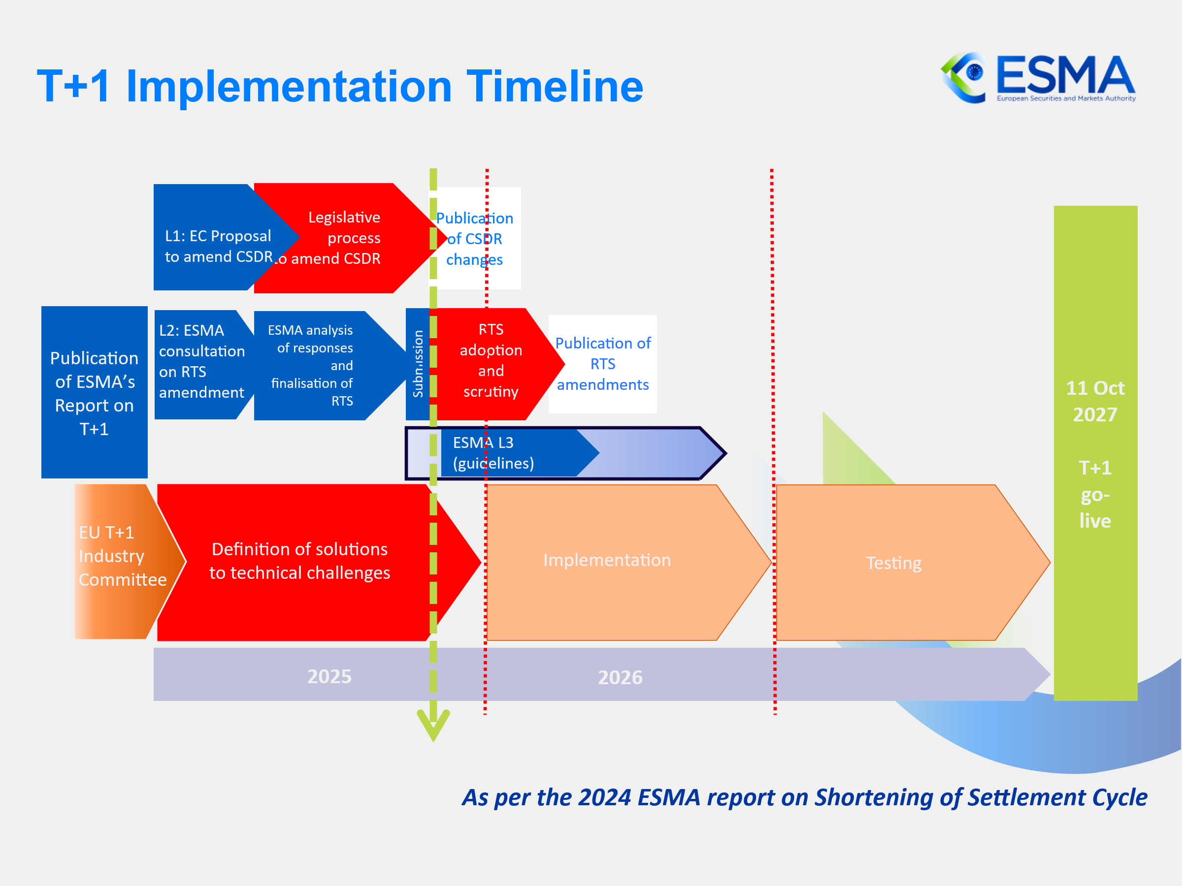 ESMA is strongly supporting the shortening of the settlement cycle in the EU to T+1. The move to T+1 will support settlement efficiency in the EU, contribute to market integration and the objectives of the Savings and Investment Union.
